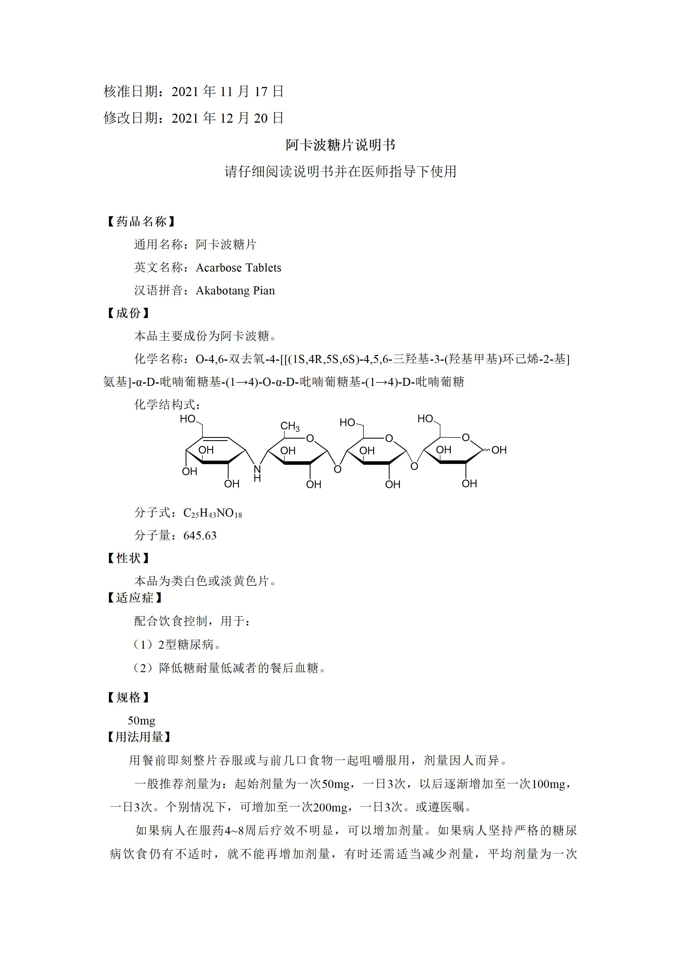 Acarbose Tablets
