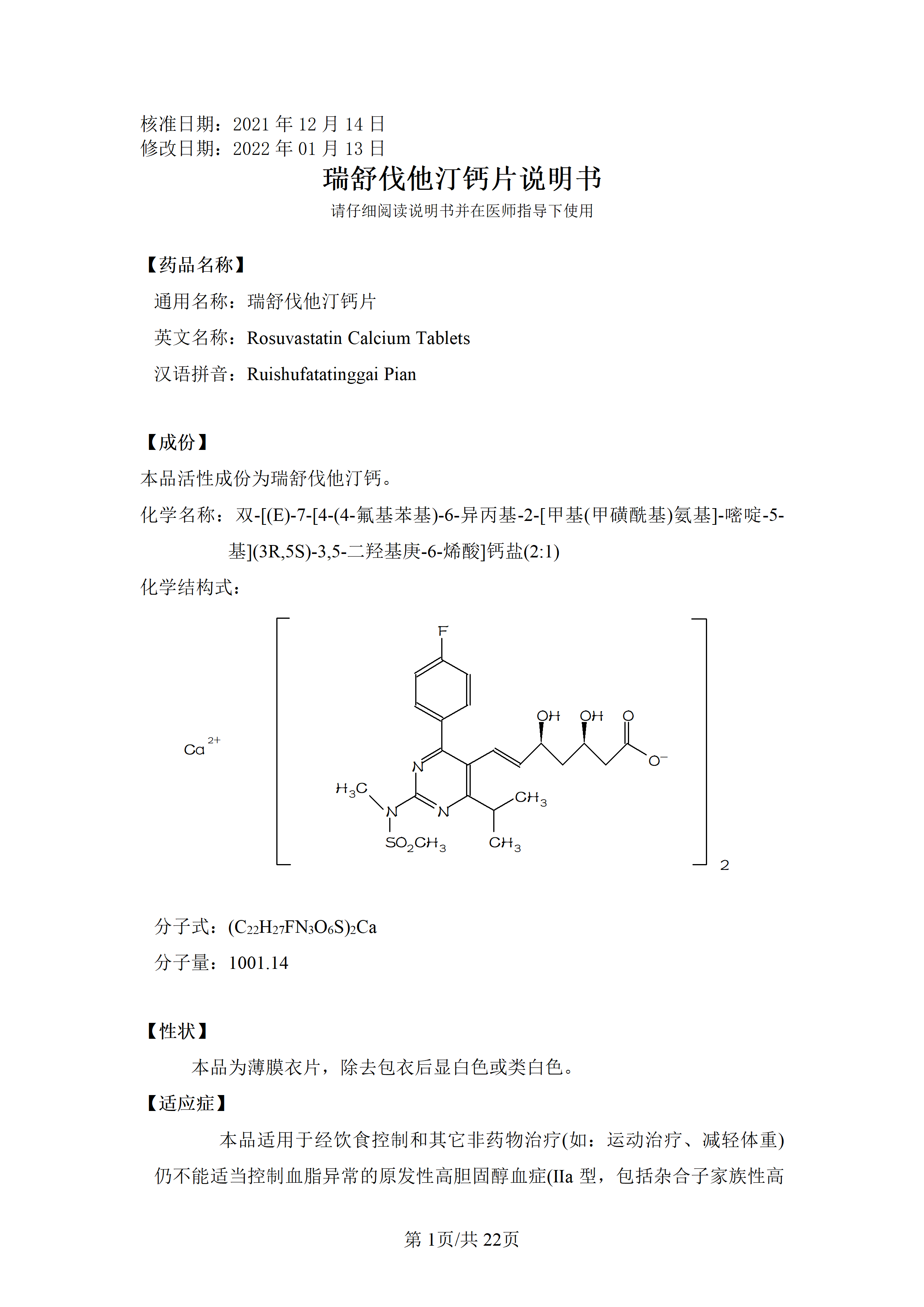 瑞舒伐他汀鈣片