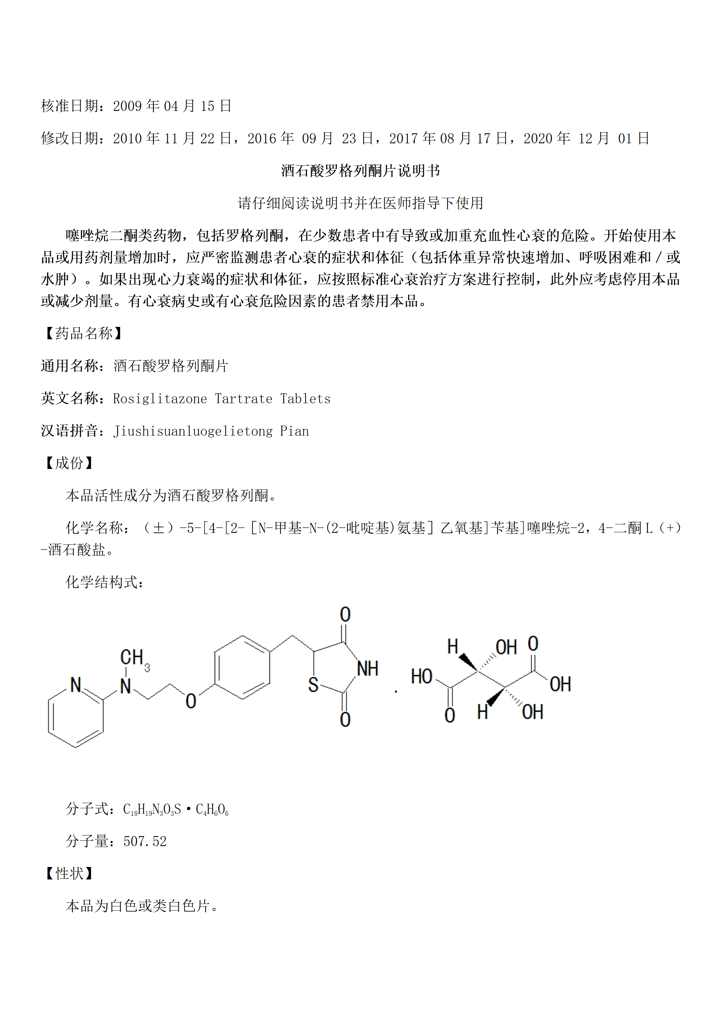 酒石酸羅格列酮片